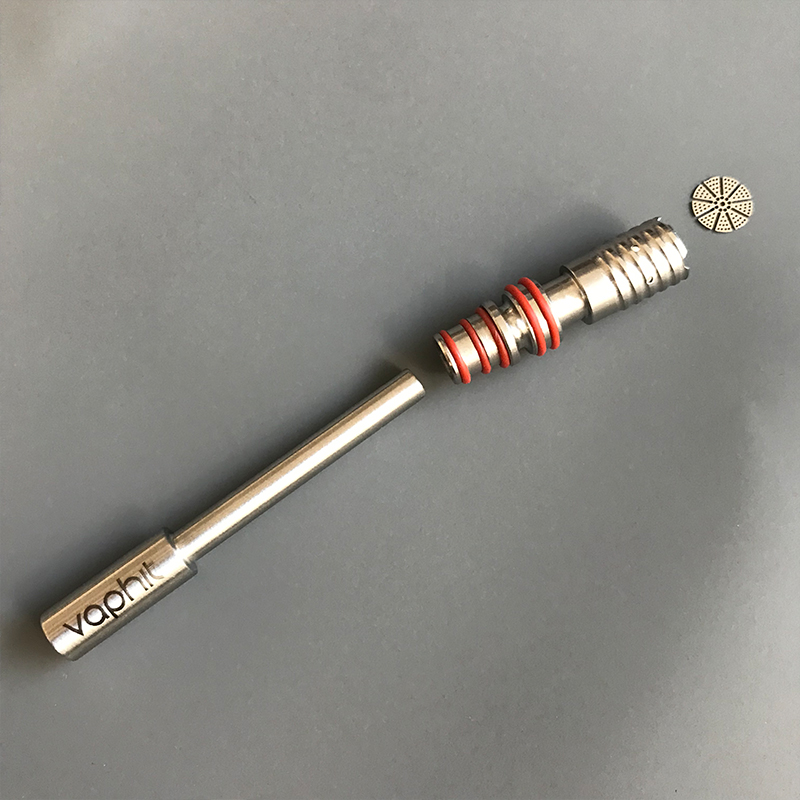 Vaphit X features a XL bowl which is deeper bowl with 6 mini holes at middle,and SS stem which allow loading quartz balls to cool down the steam,this stem has an "X" carbhole and has a mouthpiece which has 10/14mm M/male joint using for bubbler.The quartz cap (1.5mm thickness)is thicker than normal quartz cap(1.0mm thickness),can store more heat for a full extraction.